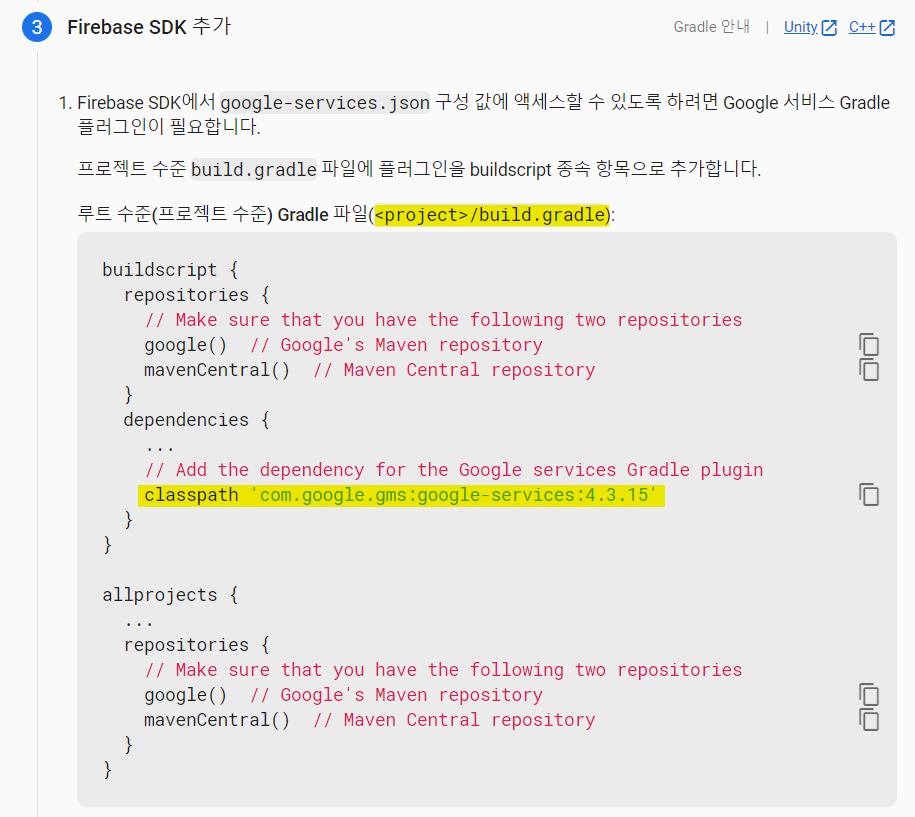 프로젝트 파일 중 build.gradle (Project : ) 파일에 종속성을 추가한다.